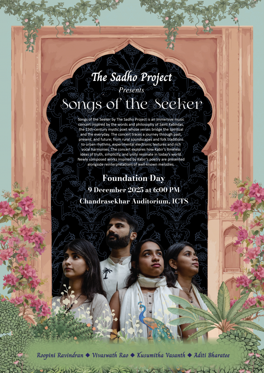 Songs of the Seeker by The Sadho Project is an immersive music concert inspired by the words and philosophy of Saint Kabirdas, the 15th-century mystic poet whose verses bridge the spiritual and the everyday. The concert traces a journey through past, present, and future; from rural soundscapes and folk traditions to urban rhythms, experimental electronic textures and rich vocal harmonies. The concert explores how Kabir’s timeless ideas of truth, simplicity, and unity resonate in today’s world. Newly composed works inspired by Kabir’s poetry are presented alongside reinterpretations of well-known melodies.