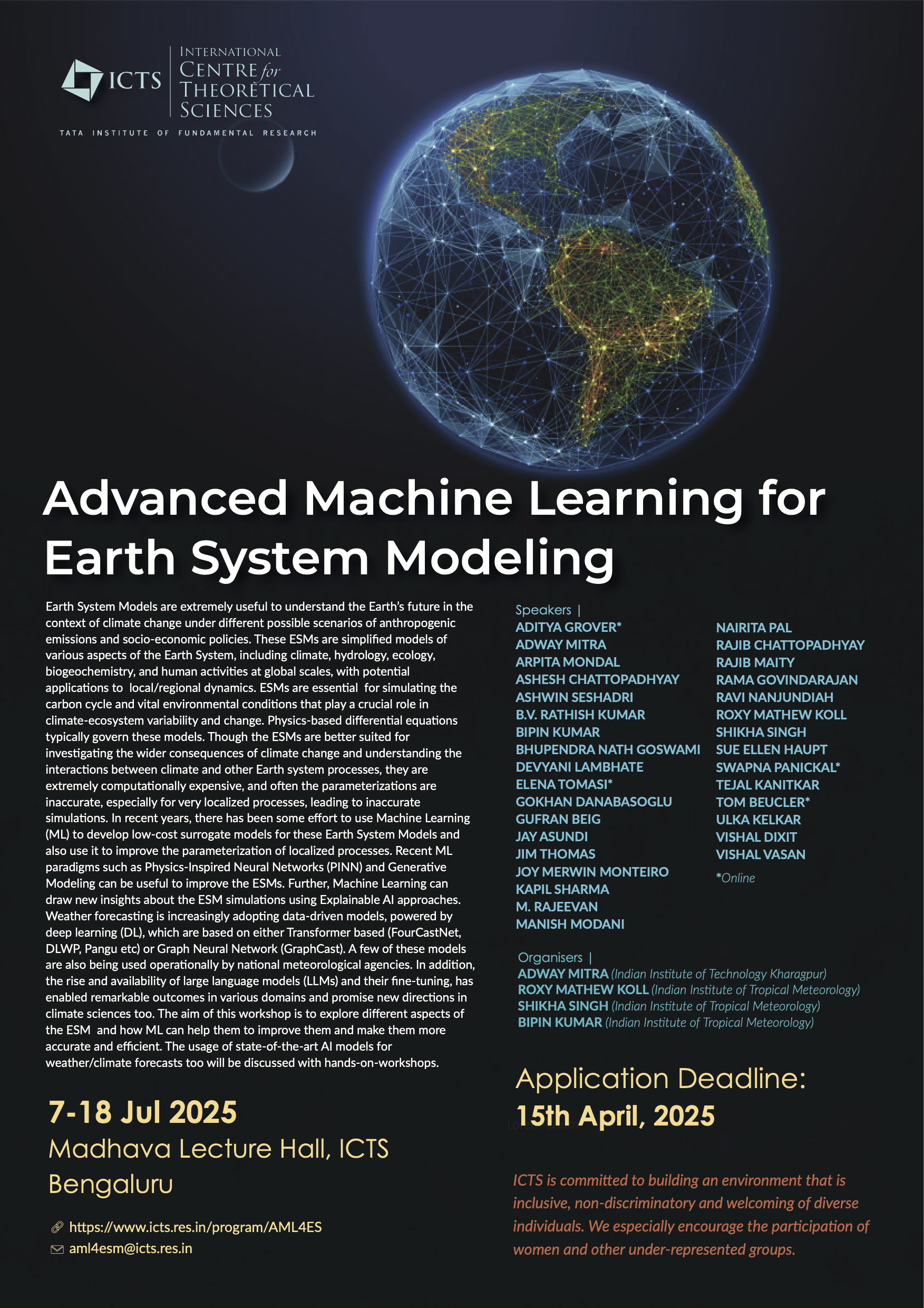 Eligibility criteria: Early career researchers (PhD within last 10 years), PhD students and industry professional are eligible to apply. Researchers/industry professionals  working on the Earth Sciences or Machine Learning will be given preference.