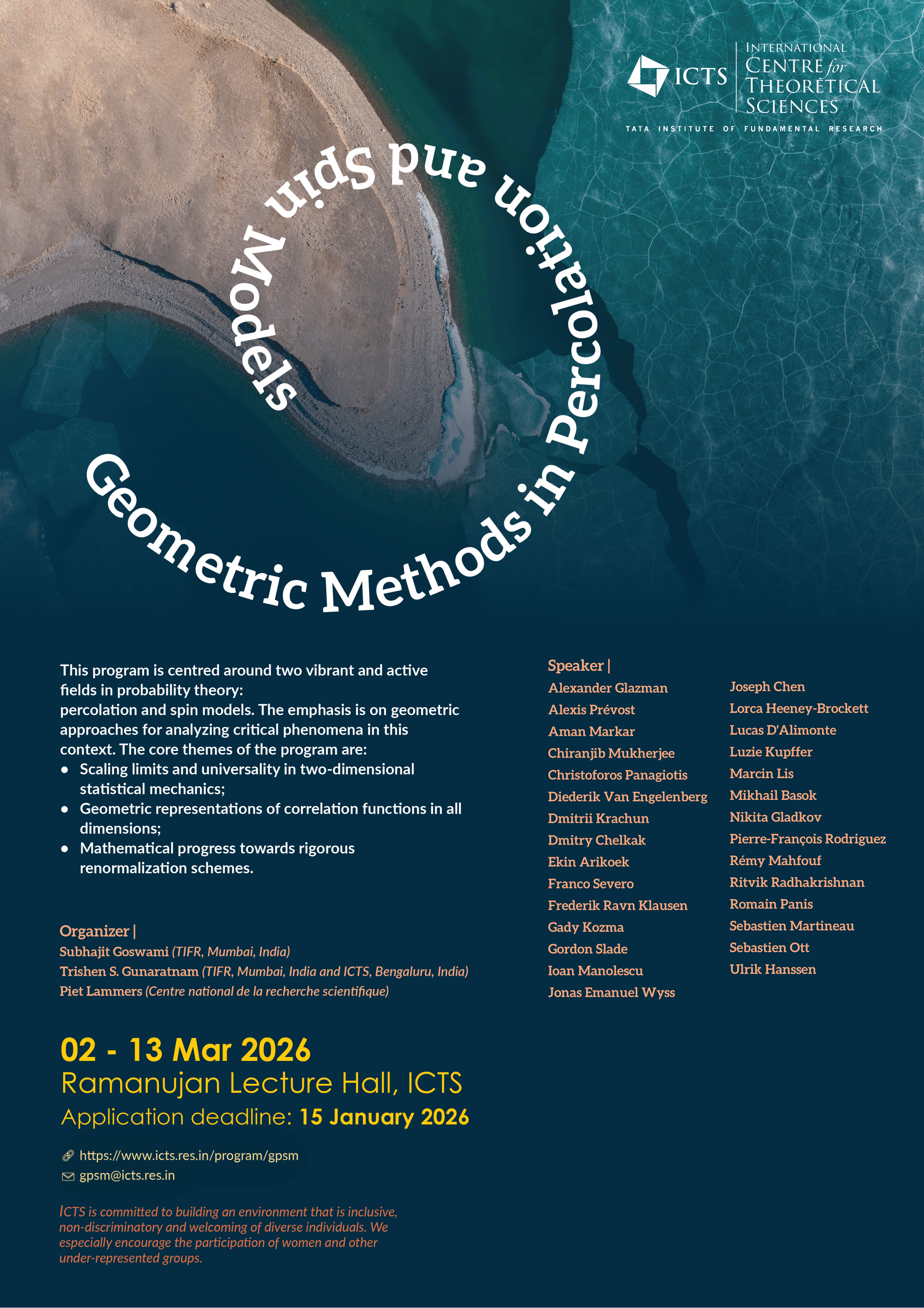 This event is intended for people with research interests in probability theory and mathematical physics.