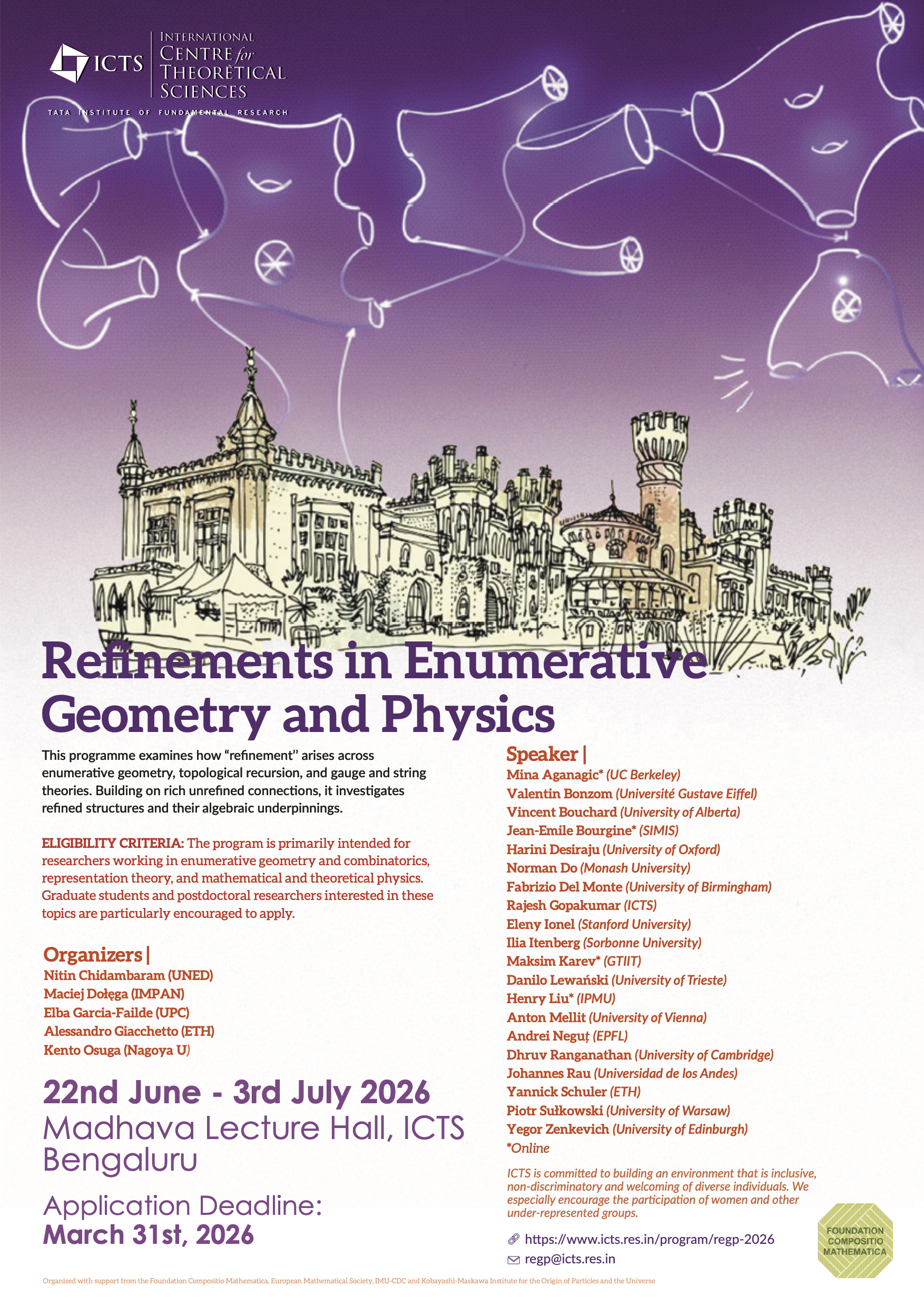 Eligibility Criteria : The program is primarily intended for researchers working in enumerative geometry and combinatorics, representation theory, and mathematical and theoretical physics. Graduate students and postdoctoral researchers interested in these topics are particularly encouraged to apply.