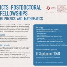 26 October 2020 Applications are invited for the Postdoctoral Program at ICTS-TIFR, Bengaluru Inviting applications for the postdoctoral positions at ICTS-TIFRmore