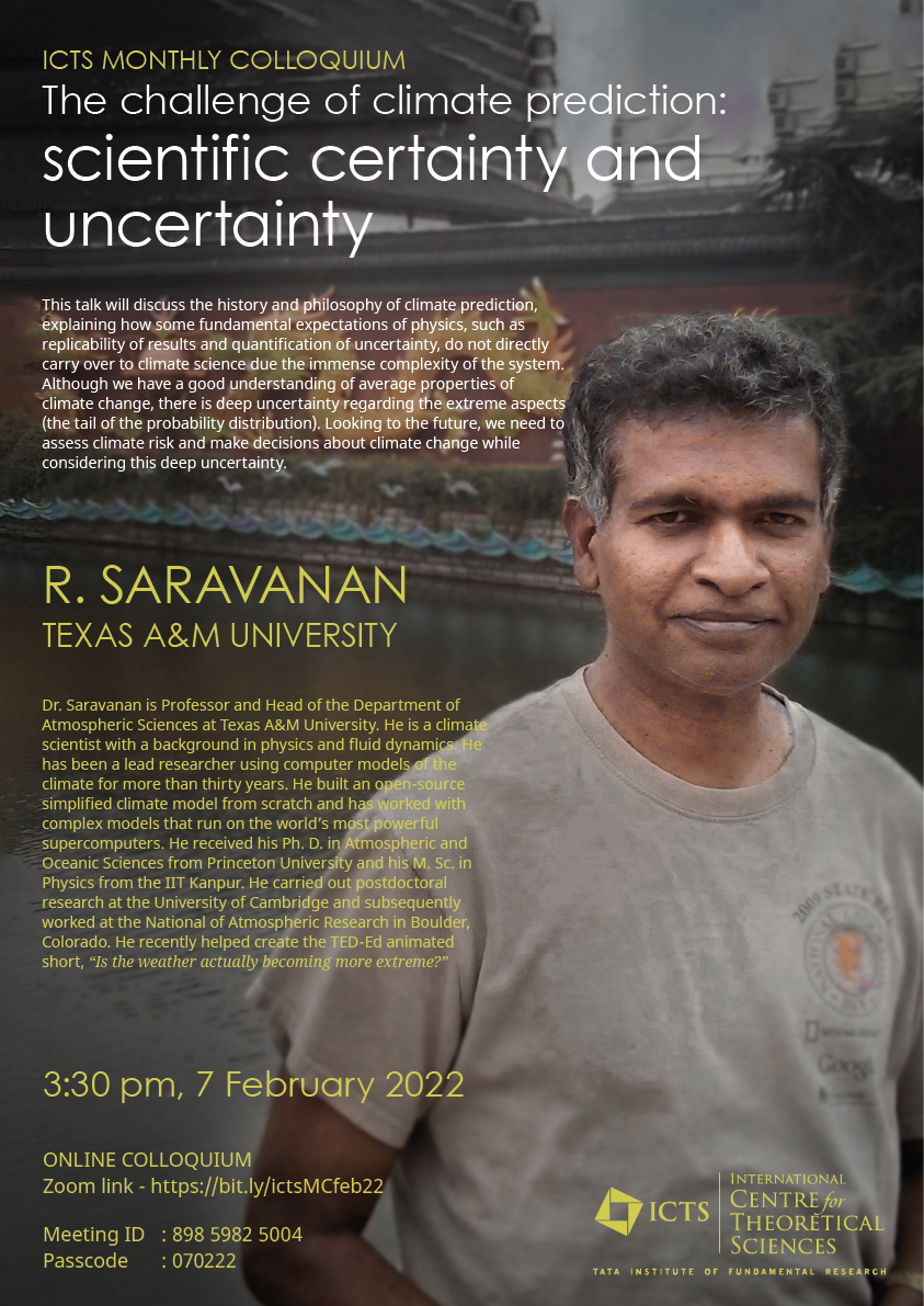 Dealing with climate change is among the greatest problems we face today. We use scientific models to predict climate change. These models are derived from scientific principles but rely on approximations to make the prediction problem tractable. The physical basis of climate prediction was recognized by the 2021 Physics Nobel Prize that was awarded to two pioneering climate scientists. This talk will discuss the history and philosophy of climate prediction, explaining how some fundamental expectations of physics, such as replicability of results and quantification of uncertainty, do not directly carry over to climate science due the immense complexity of the system. Although we have a good understanding of average properties of climate change, there is deep uncertainty regarding the extreme aspects (the tail of the probability distribution). Looking to the future, we need to assess climate risk and make decisions about climate change while considering this deep uncertainty.