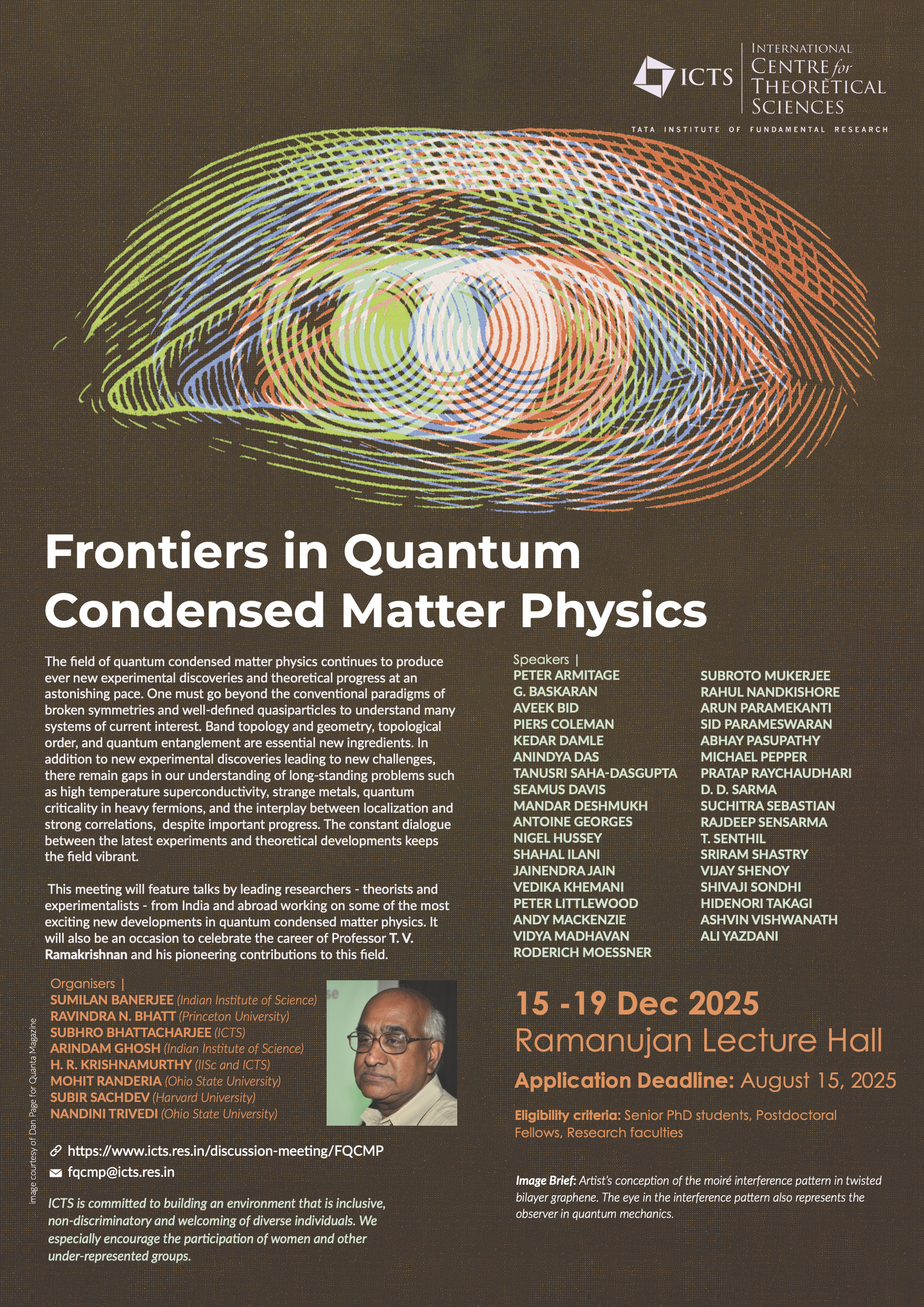 This meeting will feature talks by leading researchers - theorists and experimentalists - from India and abroad working on some of the most exciting new developments in quantum condensed matter physics. It will also be an occasion to celebrate the career of Professor T. V. Ramakrishnan and his pioneering contributions to this field.