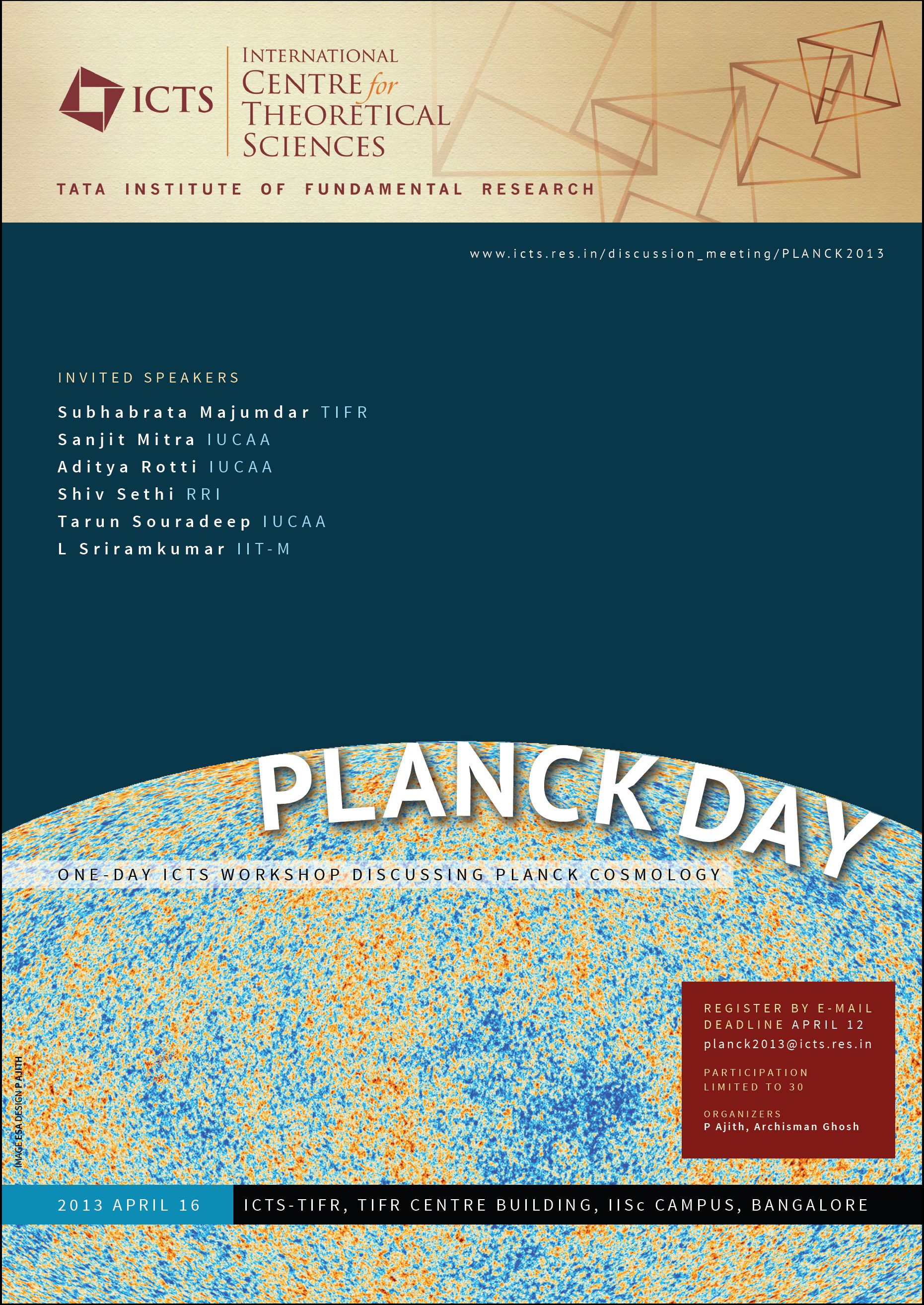 To participate, register by email to planck2013@icts.res.in by April 12. Participation is limited to the first 30.