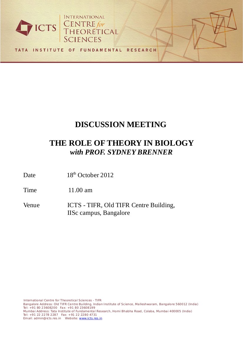 Seminar Room, ICTS, Old TIFR Centre Building, IISc campus, Bangalore