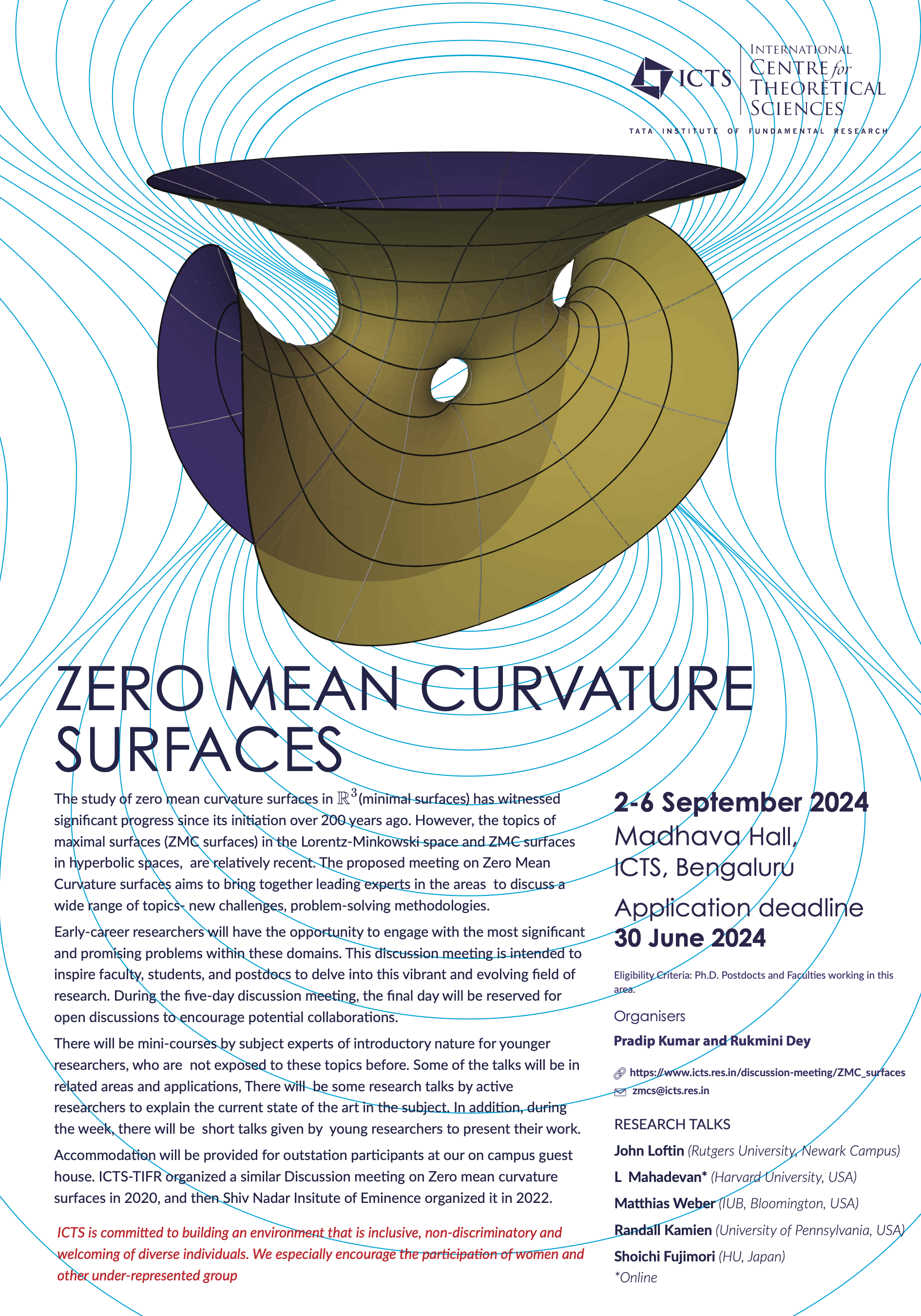 ICTS-TIFR organized a similar Discussion meeting on Zero mean curvature surfaces in 2020, and then Shiv Nadar Insitute of Eminence organized it in 2022.