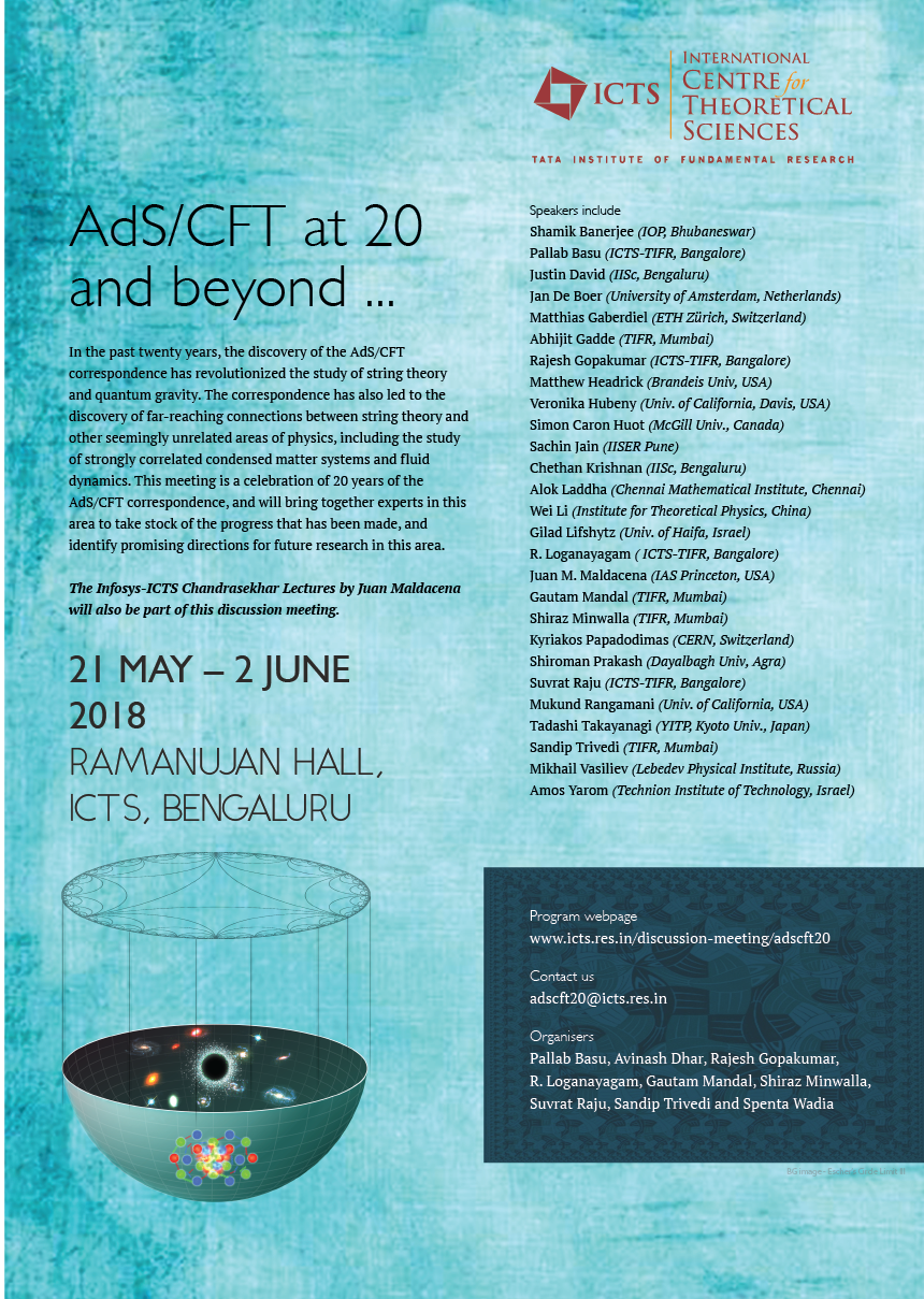 The Infosys-ICTS Chandrasekhar Lectures by Juan Maldacena will also be part of this discussion meeting.