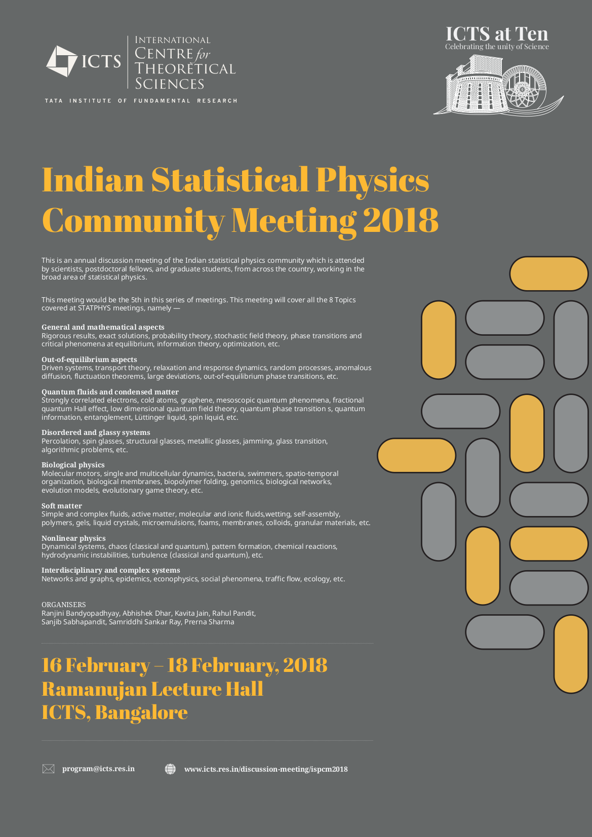 This is an annual discussion meeting of the Indian statistical physics community which is attended by scientists, postdoctoral fellows, and graduate students, from across the country, working in the broad area of statistical physics.