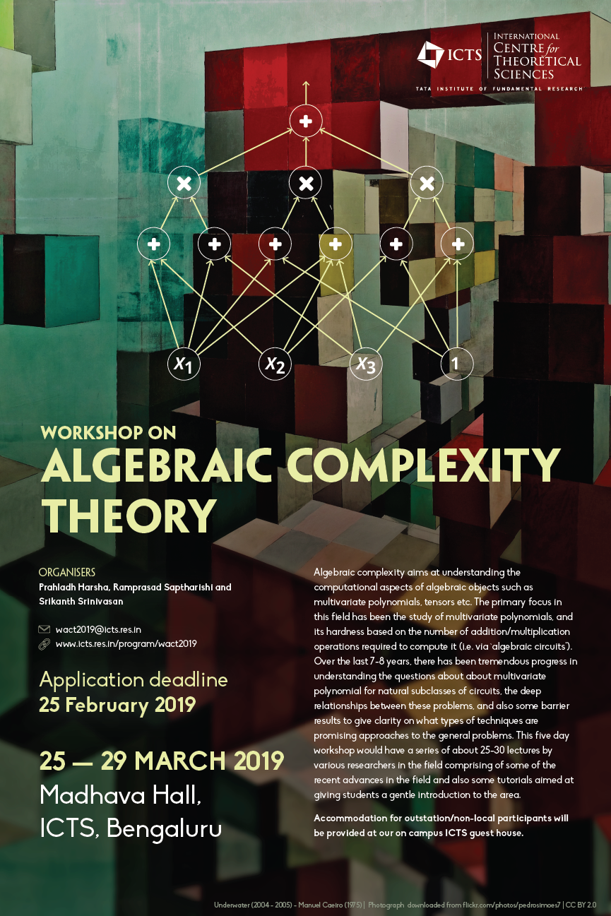 These above problems, albeit very different at first glance, are intimately connected to each other. Over the last 7-8 years, there has been tremendous progress in understanding the above questions for natural subclasses of circuits, the deep relationships between these problems, and also some barrier results to give clarity on what types of techniques are promising approaches to the general problems. This five day workshop would have a series of about 25-30 lectures by various researchers in the field comprising of some of the recent advances in the field and also some tutorials aimed at giving students a gentle introduction to the area.