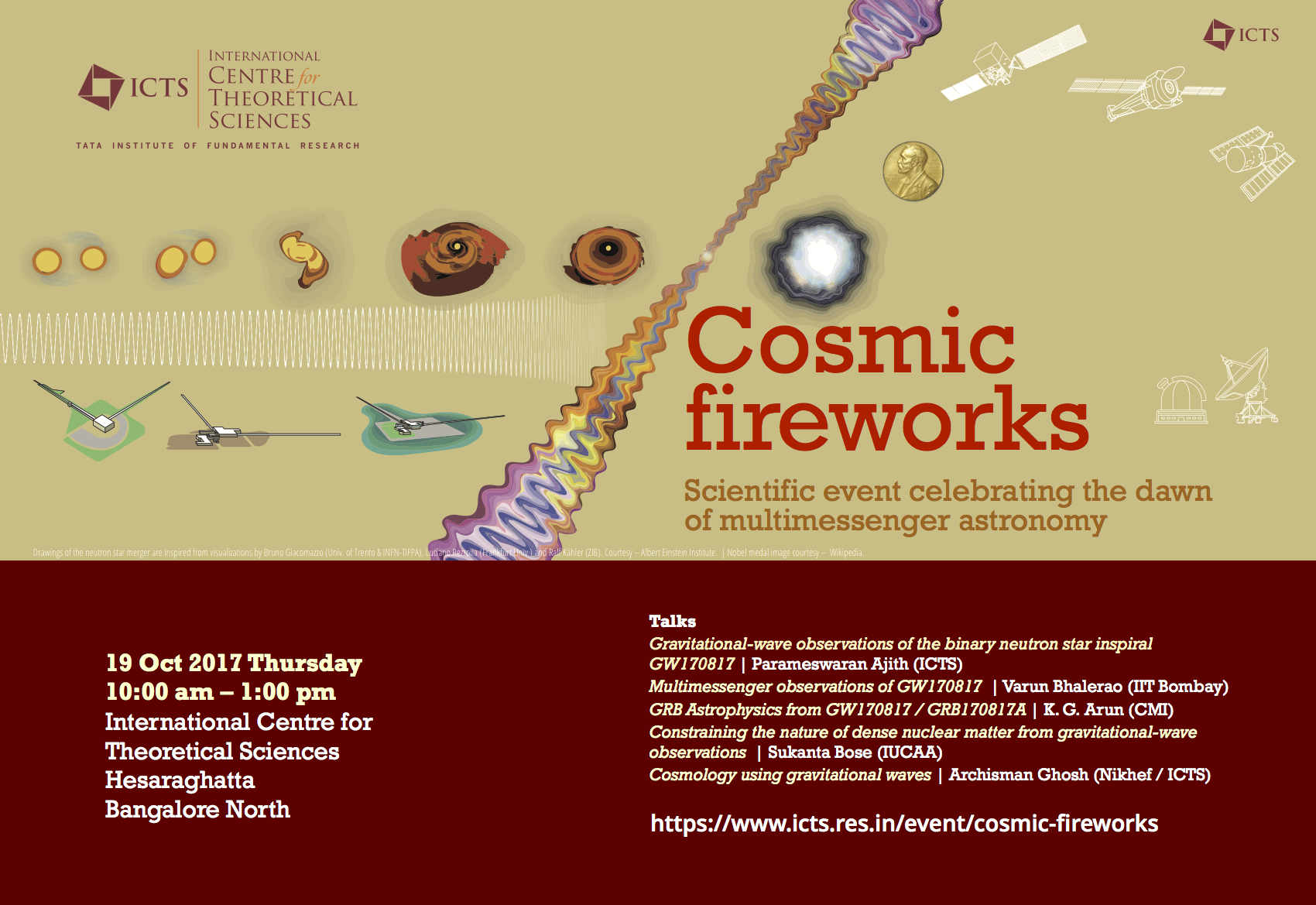 | 11:30 - 12:00 | K. G. Arun (CMI) | GRB Astrophysics from GW170817 / GRB170817A |