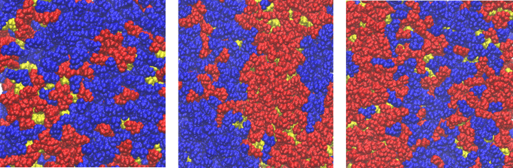 The rich structural complexity of biological mem- branes arises from the chemical diversity of its constituents. Di↵erential inter and intra-molecular interactions result in preferential segregation and clustering of certain types of lipids and proteins, giving rise to a variety of lateral organization on the membrane surface. Recently, Edward Ly- man’s group at Delaware carried out multiple long timescales all-atom molecular dynamics simulations (tens of microseconds long) with carefully chosen lipid compositions to reproduce a variety of phases [1, 2]. We focus on the systems that exhibit liquid- ordered and liquid-disordered (Lo/Ld) co-existence. The three systems with their fractional composi- tions are (i) PSM/POPC/Chol (0.47/0.32/0.21) (ii) PSM/DOPC/Chol (0.43/0.38/0.19) (iii) DPPC/DOPC/Chol (0.37/0.36/0.27).