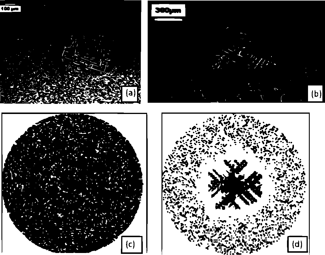Initially closely spaced straight cracks appear at the positive electrode. As the sample dries these cracks merge together in small groups. Several stages of this merging produces the final hierarchical pattern.