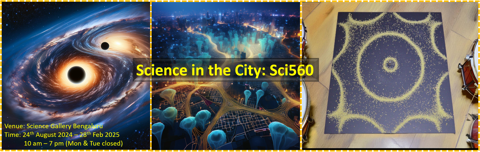 As part of the Sci560 exhibition organized by Science Gallery Bengaluru, the International Centre for Theoretical Sciences (ICTS) presents three unique exhibits that bridge the gap between cutting-edge scientific research and interactive public engagement. These exhibits showcase the synergy between theoretical physics, experimental analogies, and natural phenomena, inviting visitors to explore complex concepts through visually compelling and hands-on experiences.