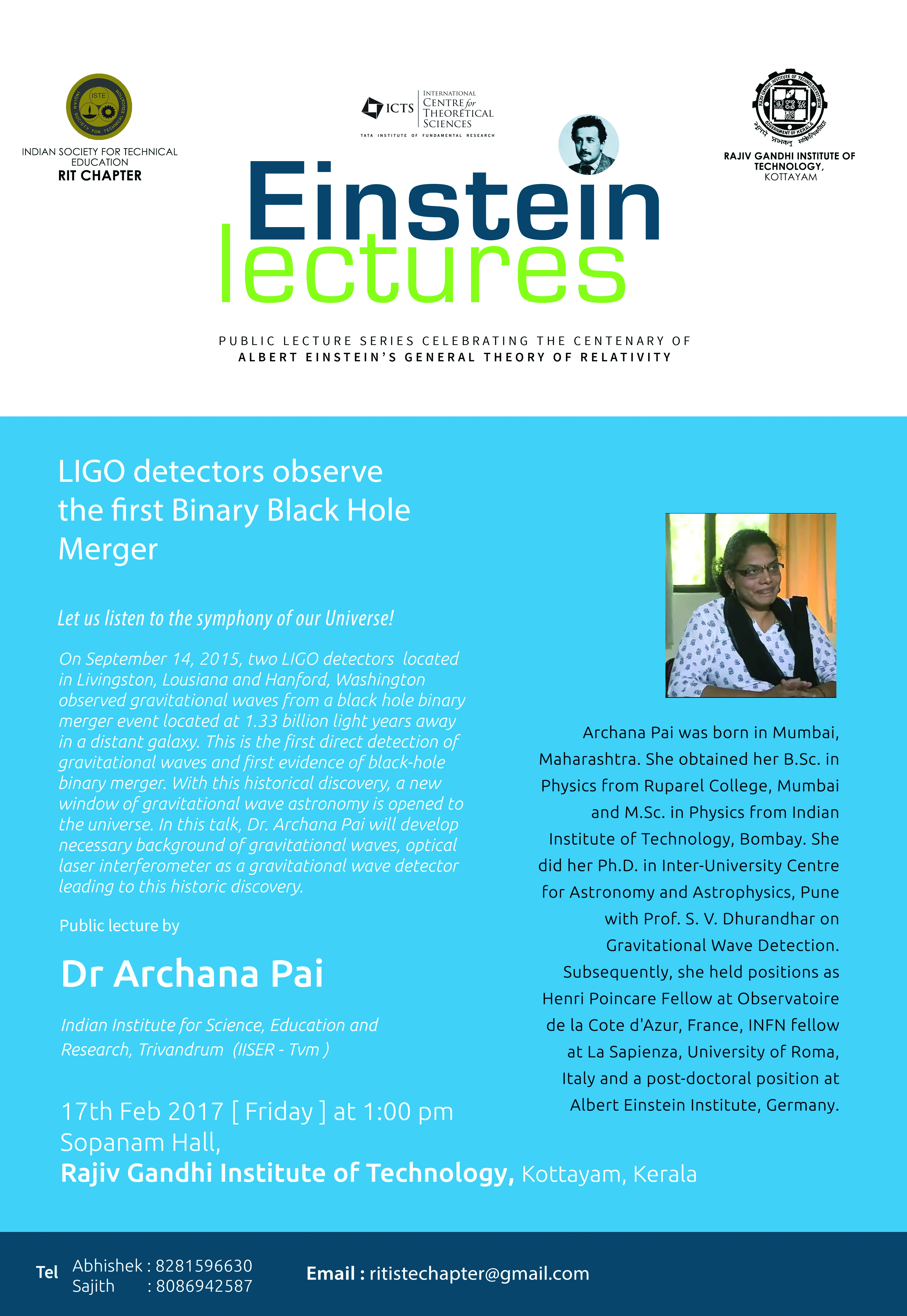 On September 14, 2015, two LIGO detectors located in Livingston, Lousiana and Hanford, Washington observed gravitational waves from a black hole binary merger event located at 1.33 billion light years away in a distant galaxy. This is the first direct detection of gravitational waves and first evidence of black-hole binary merger. With this historical discovery, a new window of gravitational wave astronomy is opened to the universe. In this talk, Dr. Archana Pai will develop necessary background of gravitational waves, optical laser interferometer as a gravitational wave detector leading to this historic discovery.