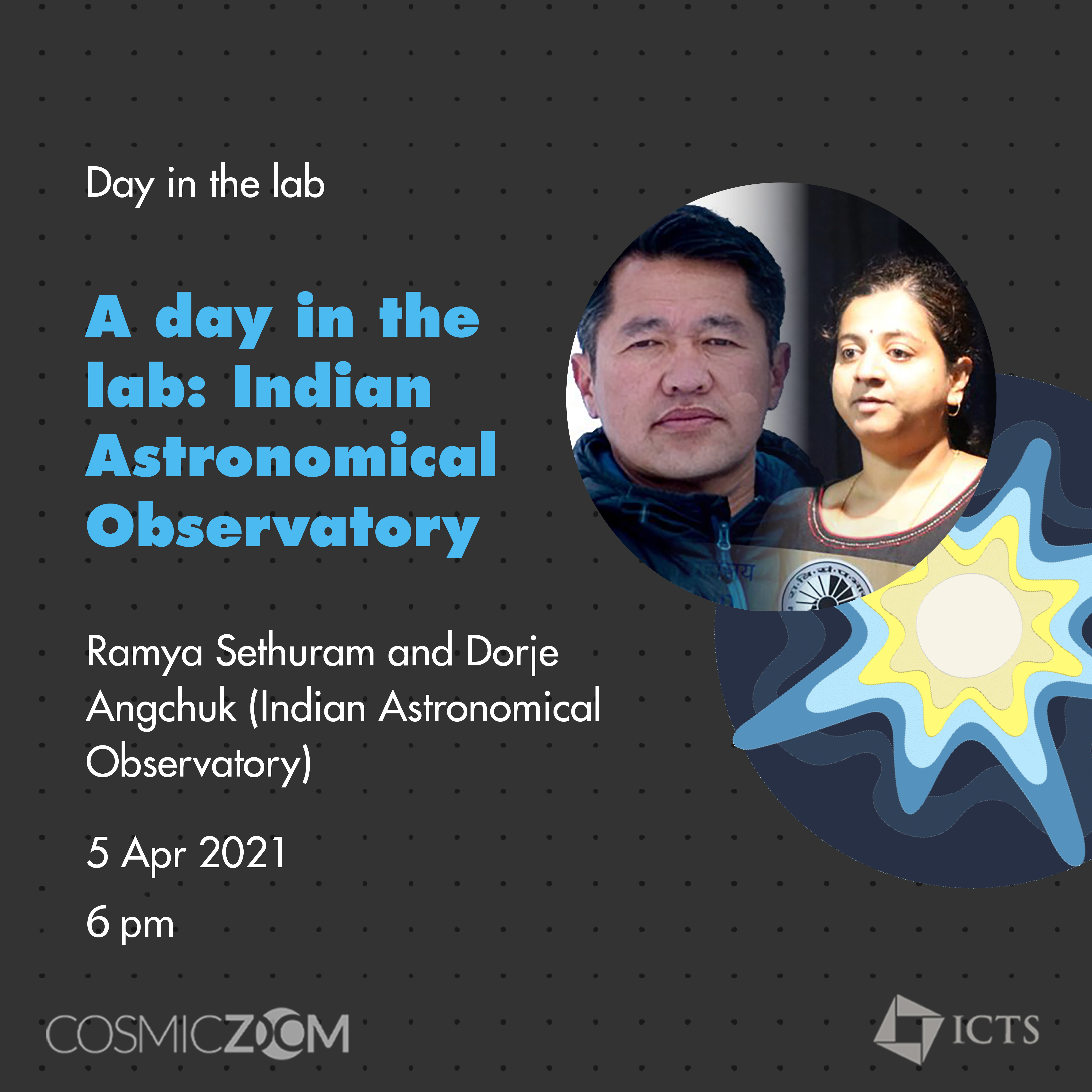 Indian Astronomical Observatory’s 2m-Himalayan Chandra Telescope (2m-HCT) is situated at Hanle, Ladakh and remotely controlled from CREST campus of IIA, located at Hosakote, near Bengaluru. Hanle serves as an excellent observing site in the country providing a large number of clear nights required for astronomical observations. This is one of the backbone research facilities for premiere research in astronomy in India. It has completed 20 years of continuous operations in 2020. Ramya Sethuram will give a brief introduction to the 2m-HC and its back-end science instruments. Following this, Dorje Angchuk will give the visitors a guided tour of the observatory.