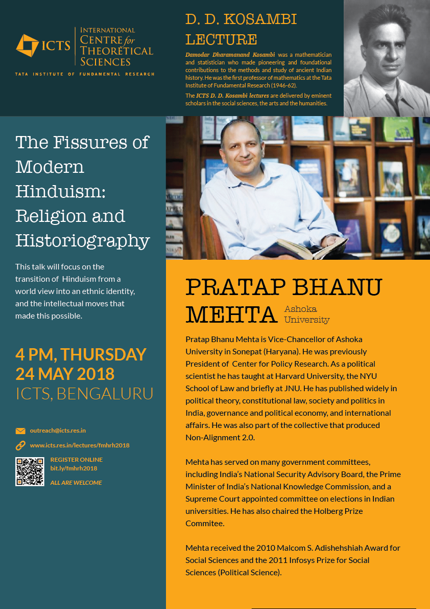 This talk will focus on the transition of Hinduism from a worldview into an ethnic identity, and the intellectual moves that made this possible.
