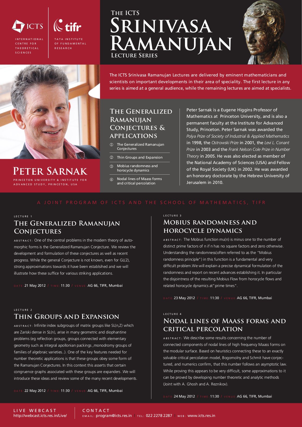 Abstract: One of the central problems in the modern theory of automorphic forms is the Generalized Ramanujan Conjecture.We review the development and formulation of these conjectures as well as recent progress. While the general Conjecture is not known, even for GL(2), strong approximations towards it have been establsihed and we will illustrate how these suffice for various striking applications.