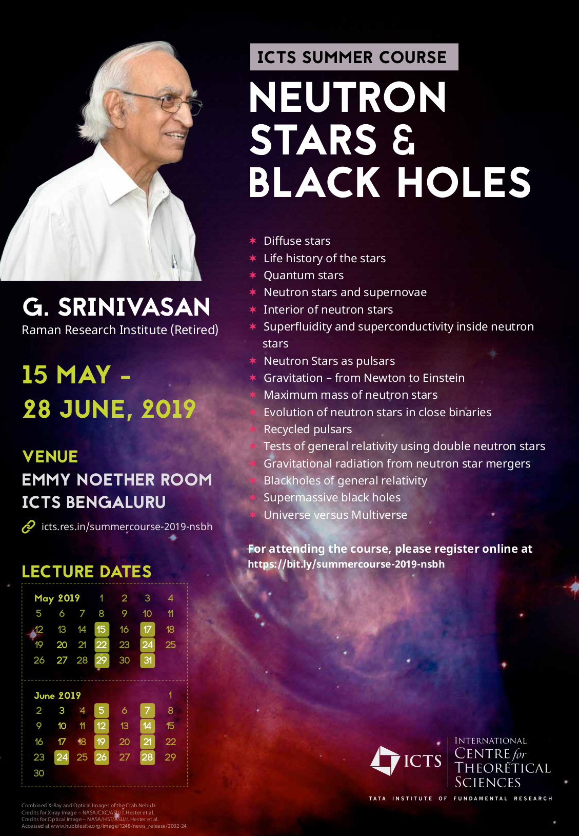 The theme of the course will be neutron stars and black holes, with emphasis on neutron stars in binaries (their formation and rotational history); their mergers; gamma ray bursts; formation of intermediate mass and super massive black holes.