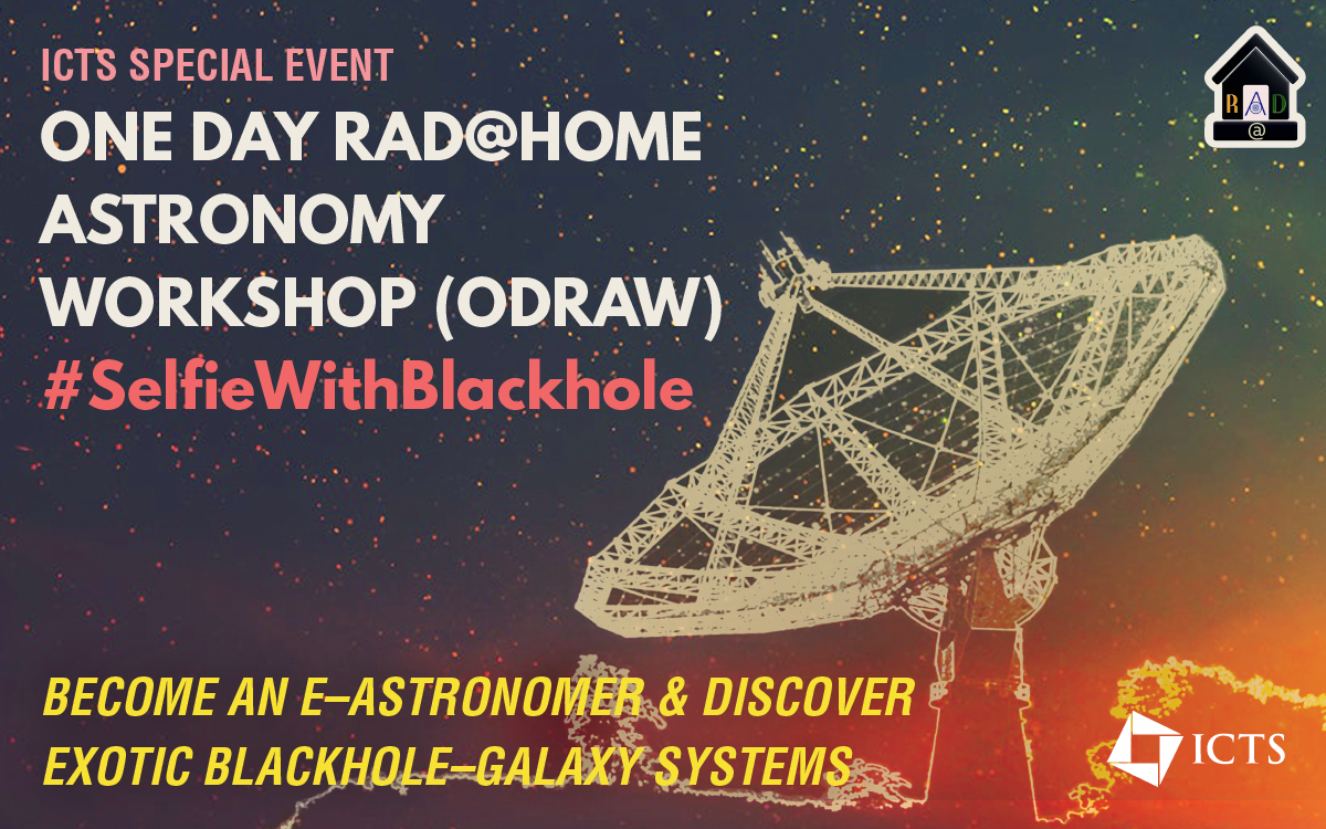 40 participants will get trained in their 1st step in becoming citizen-scientists or e-astronomers. Participants will learn to use a NASA web tool to make images using the data collected by GMRT and other telescopes. They will learn to understand UV-optical-IR-radio (RGB-C) images of galaxies. GMRT image of galaxies hosting supermassive black holes and launching giant plasma jets will be prepared in this hands-on session by the participants who will bring their laptops/tablets. Participants will post these images on social media with #SelfieWithBlackhole and tag RAD@home, India & ICTS, Bangalore.
