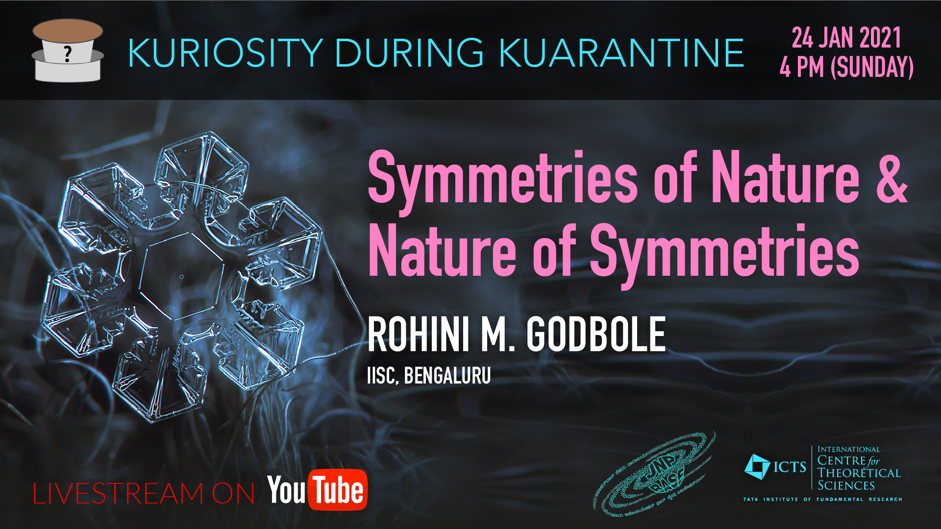 Symmetries in geometrical shapes and objects have fascinated us since the beginning of the intellectual explorations, including poet William Blake talking about the ‘fearful symmetry’ of a tiger burning bright! Apart from this fascination, symmetries of laws of nature have played an indispensable role in us being able to discover these laws themselves. After giving a description of symmetries that we come across in all walks of life, I would like to present a deep connection between conservation laws such as conservation of energy that we are familiar with and symmetries of equations of motion (such as Newton’s laws). I want to end my talk with telling you how this connection, unraveled by the great Mathematician Emmy Noether, is the corner stone of many developments in modern day particle physics and how it has helped physicists in puzzling out fundamental laws of nature, including the ideas that led to the postulate of Higgs boson, which was discovered at the Large Hadron Collider about a decade ago!