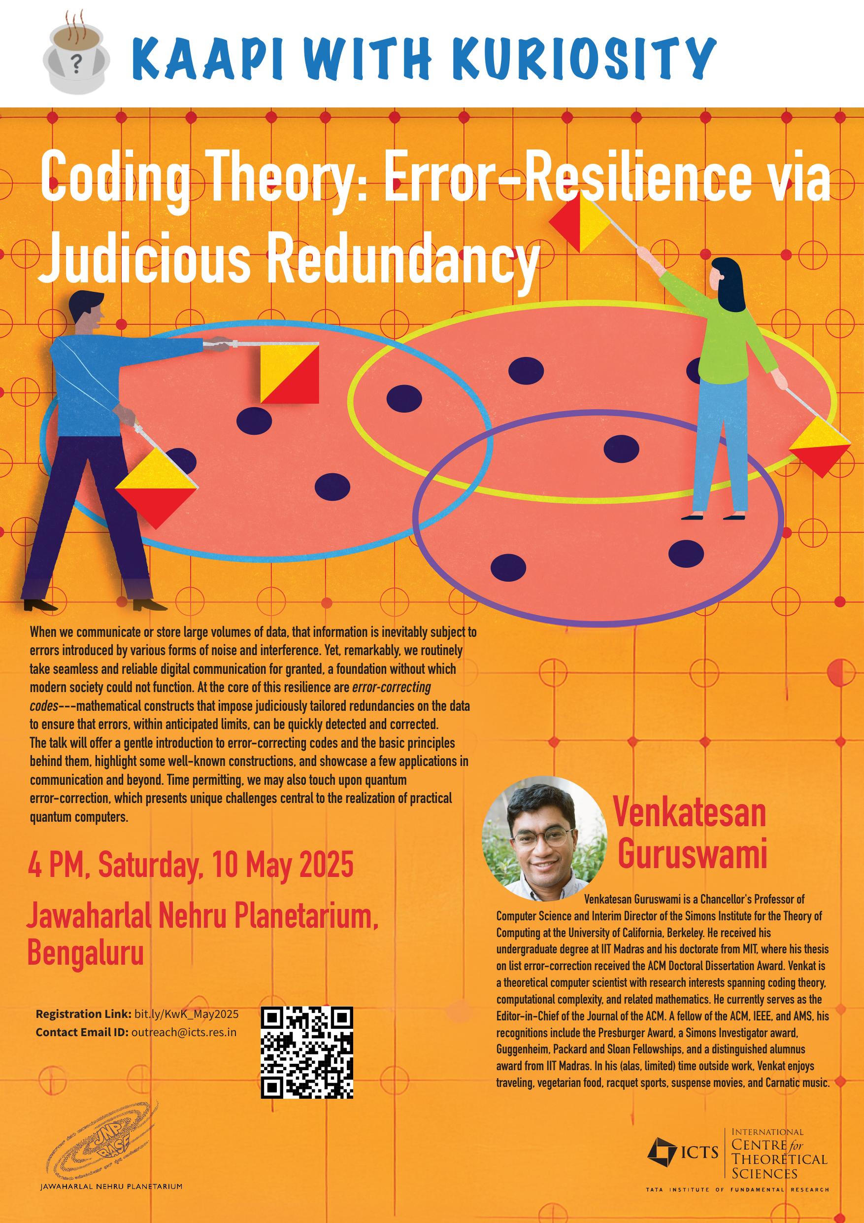 Venkatesan Guruswami is a Chancellor's Professor of Computer Science and Interim Director of the Simons Institute for the Theory of Computing at the University of California, Berkeley. He received his undergraduate degree at IIT Madras and his doctorate from MIT, where his thesis on list error-correction received the ACM Doctoral Dissertation Award.