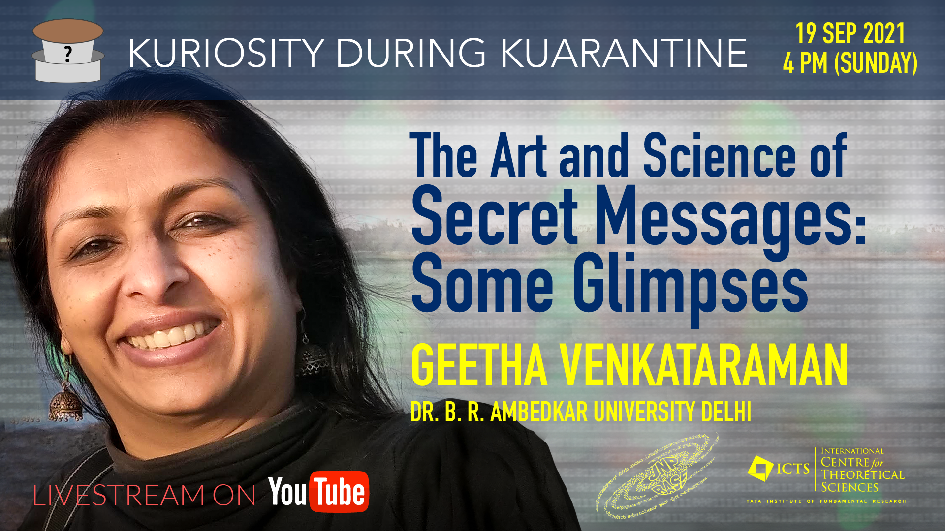 In the modern world with so much of our exchanges, commerce and communications taking place digitally, it has become imperative to ensure that all these are secure. Cryptography is the art and science of keeping `messages’ secure from eavesdroppers or unintended audiences. However, keeping messages secret is not just an issue during our time period but has been important historically. In this talk, we will discuss some simple encryption systems that were used. This will help us formulate the `key’ ingredients that any encryption method needs to possess. We will also discuss the famous RSA public key encryption system which is essentially based on the fact that it is easy to multiply two numbers but difficult to factorise a given number.
