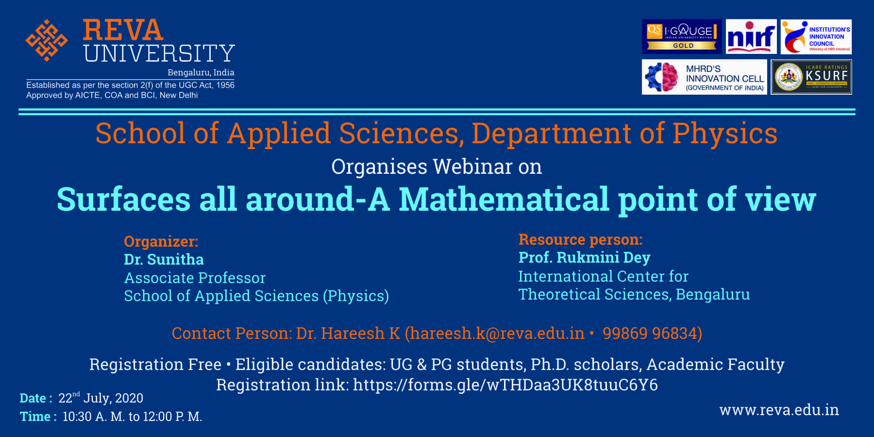 Contact: outreach@icts.res.in, hareesh.k@reva.edu.in