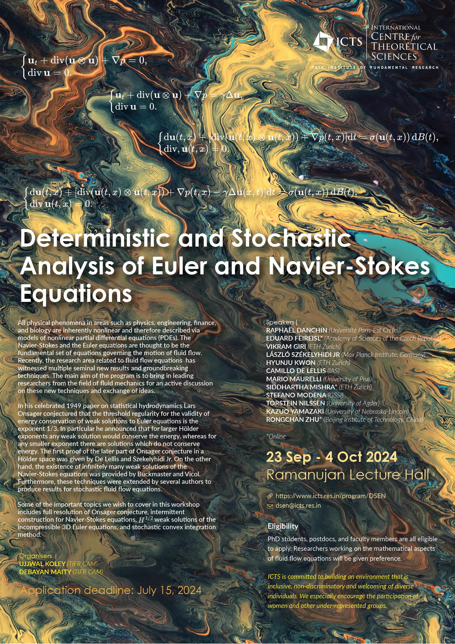 Eligibility criteria: PhD students, postdocs, and faculty members are all eligible to apply. Researchers working on the mathematical aspects of fluid flow equations will be given preference.