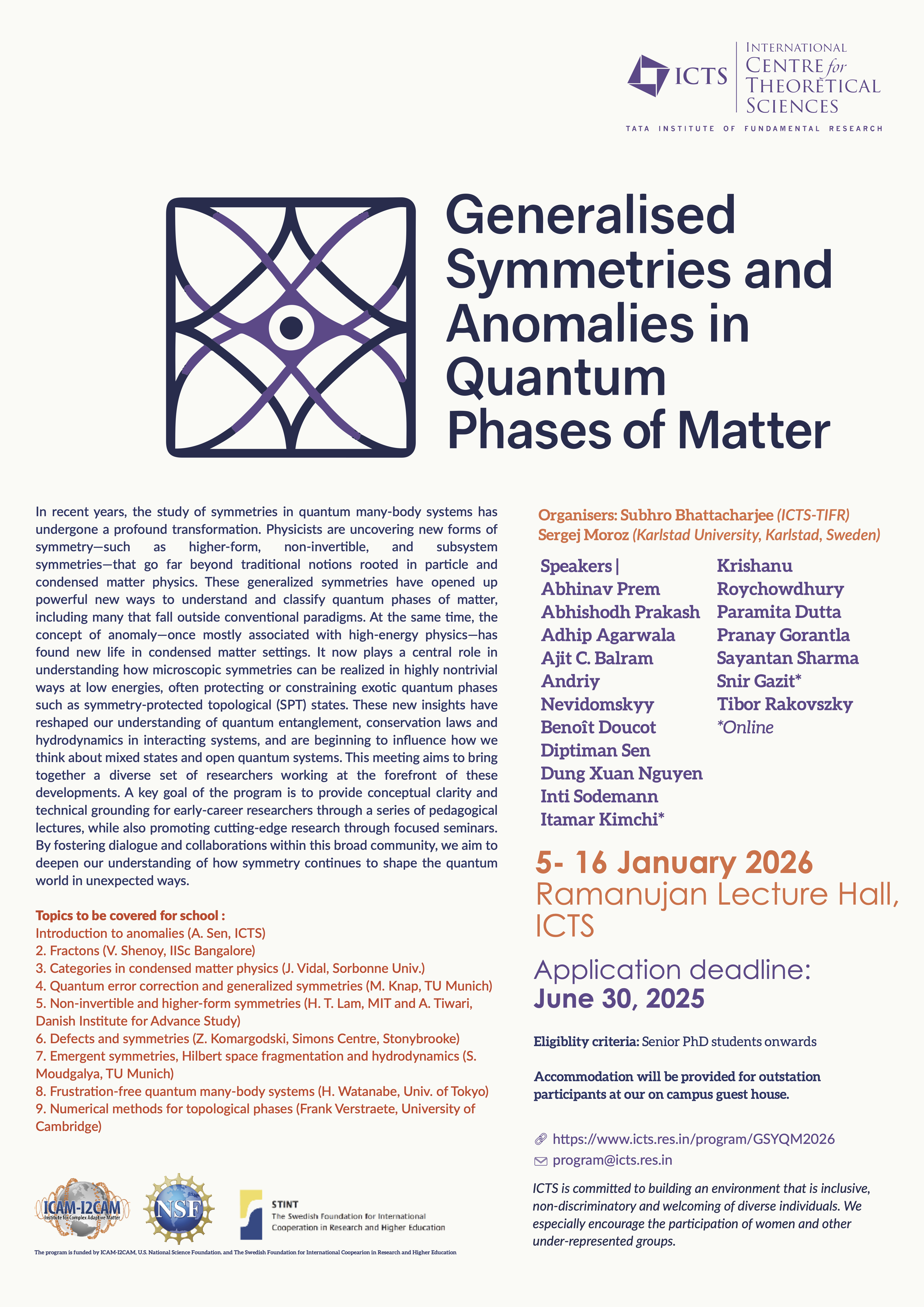The program is funded by ICAM-I2CAM, U.S. National Science Foundation and supported by the Swedish Foundation for International Coopearion in Research and Higher Education.
