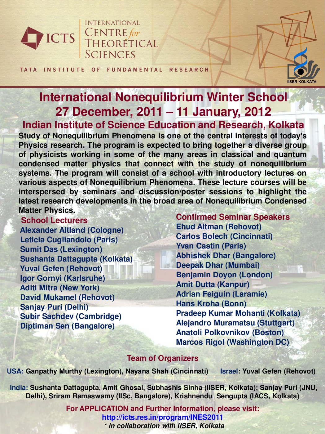 A convergence of theoretical and experimental advances in recent years has led to the insight that dynamics out of equilibrium, both classical and quantum, especially quantum phase transitions, gives rise to physics quite distinct from that of equilibrium systems. The goal of this Winter School is to take students and others who wish to learn about this subfield from the basics to the frontiers. Several sets of pedagogical lectures by pioneers in the field will be interspersed with short talks about current advances. Lecture topics will start with the foundations of classical and quantum transport, will treat quantum quenches near phase transitions, the Keldysh technique, driven systems, glasses, active systems, and gauge/gravity methods. All participants will be encouraged to present posters about their work.