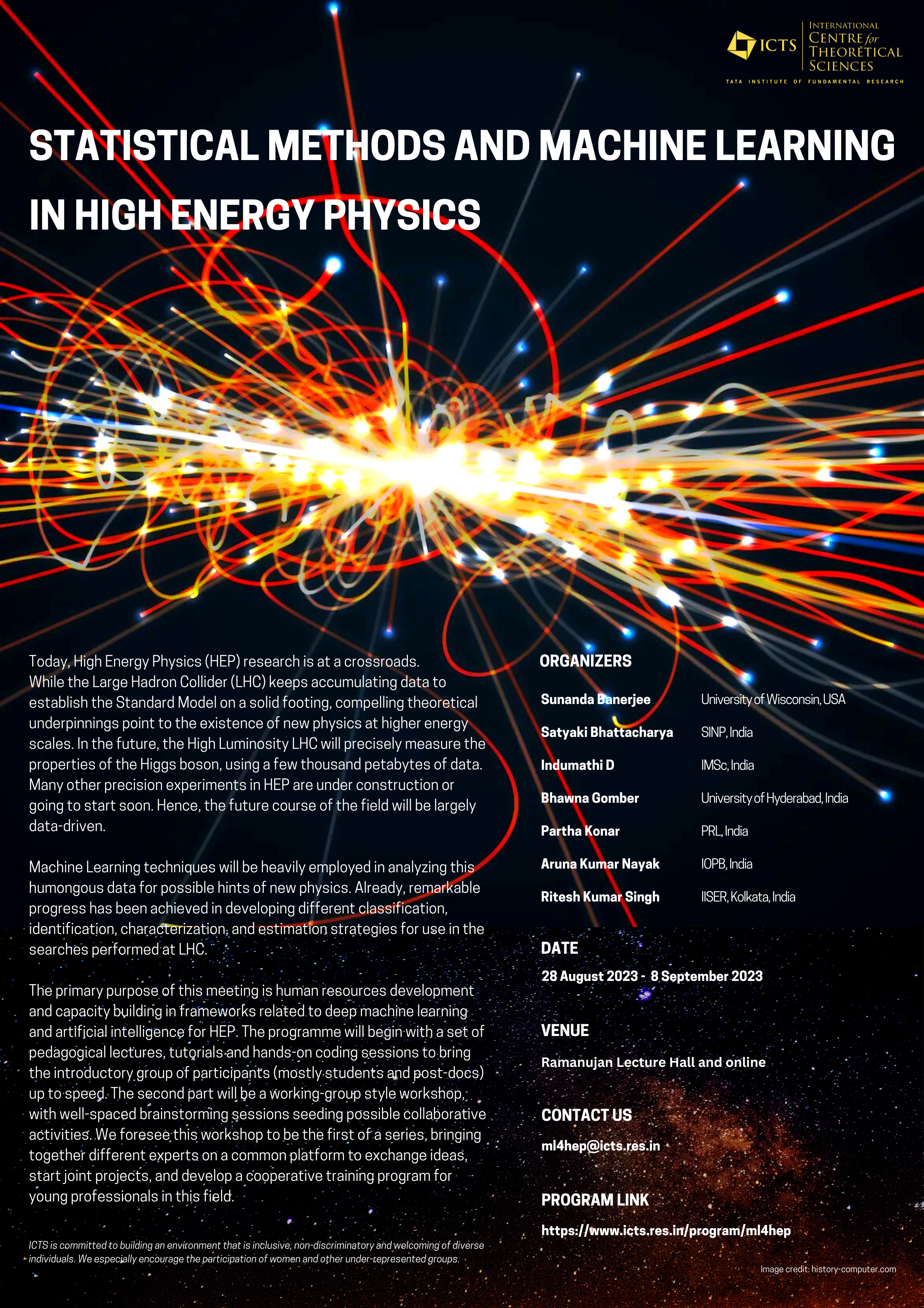 This program is focused on application of Deep Machine Learning (DML) in High Energy Physics and the eligibility requirements for the participants include being a student or postdoc, working in theoretical or experimental particle physics or astro-particle physics. Additionally, participants should have experience with programming languages, especially Python and C++, and some knowledge of simulated event generation and data analysis frameworks such as Madgraph, Pythia, Delphes, ROOT etc.. Students having basic knowledge of machine learning tools and working on problems that can be benefitted from the applications of machine learning will be preferred.