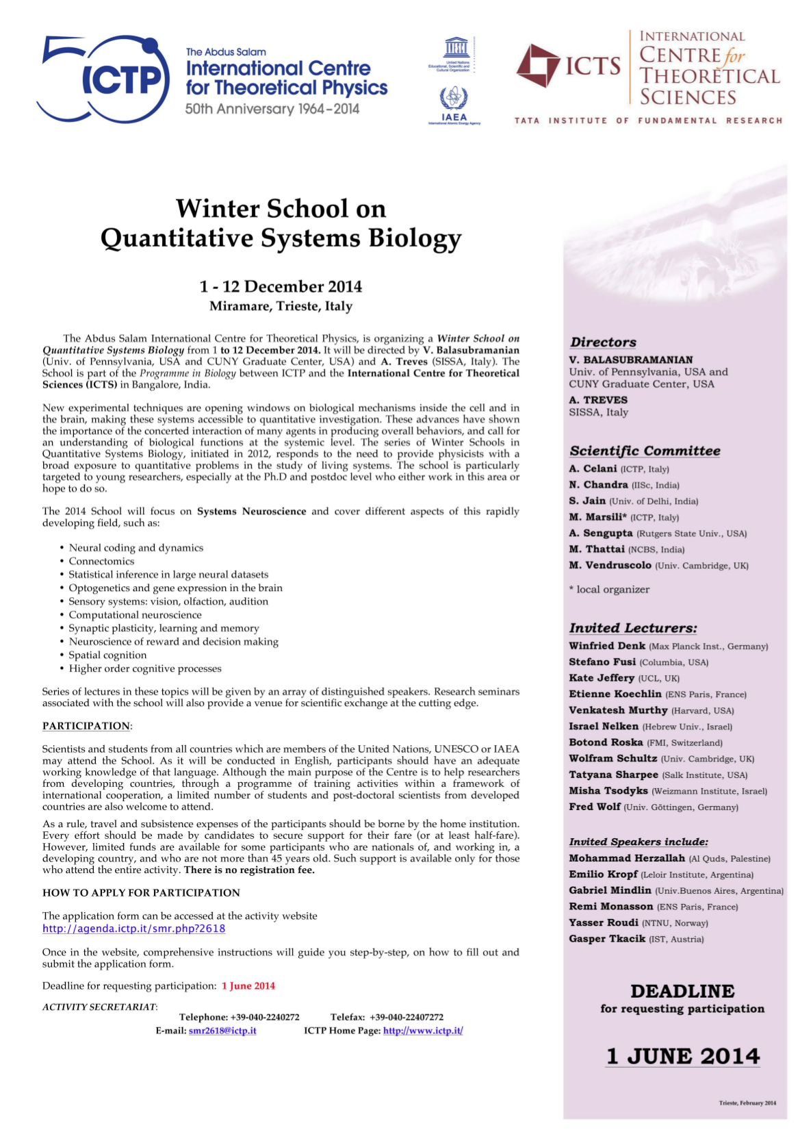 This school is part of the Programme in Biology between International Centre for Theoretical Physics (ICTP) in Italy and ICTS.