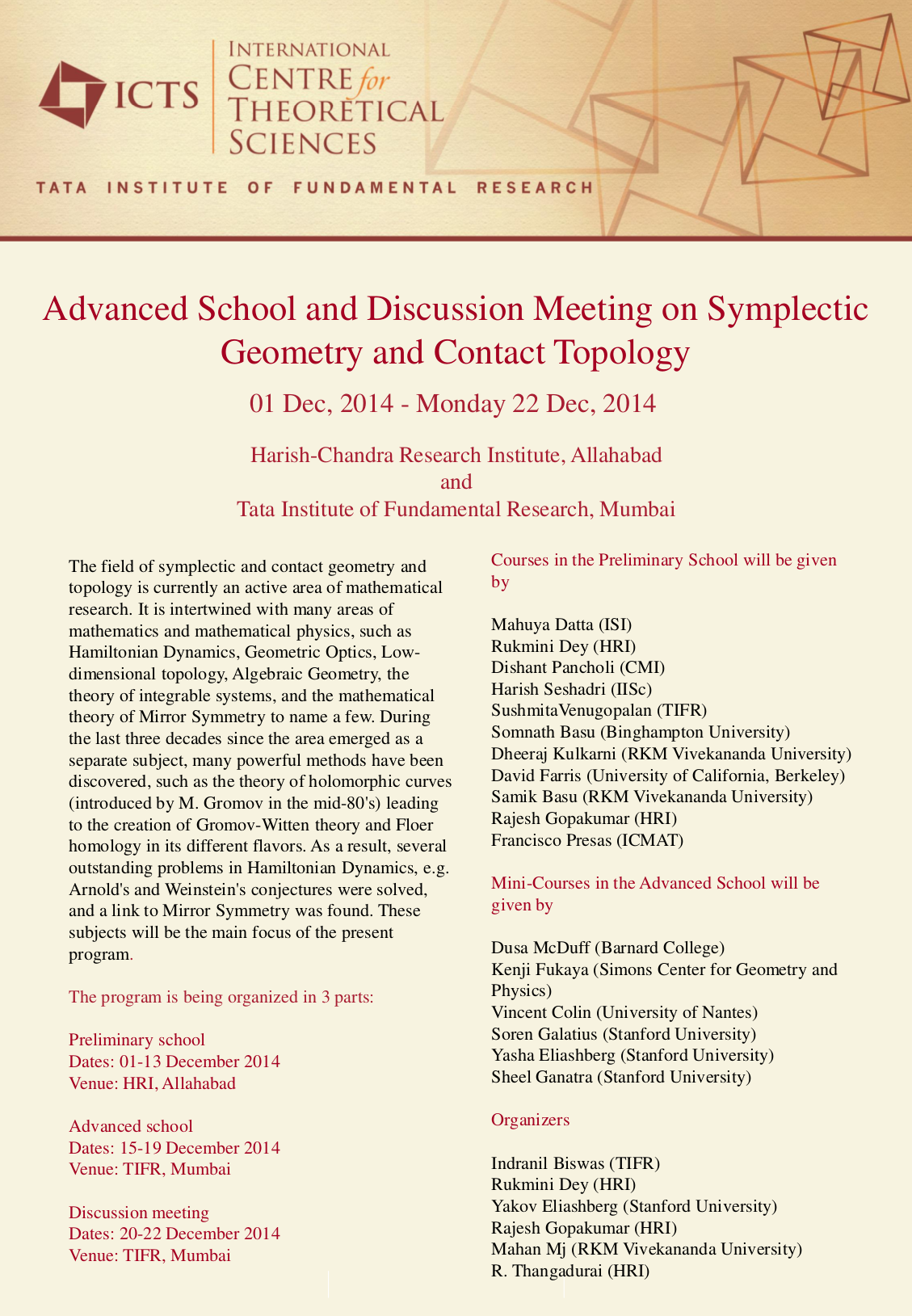 - Discussion meeting Dates: 20-22 December 2014 Venue: TIFR, Mumbai