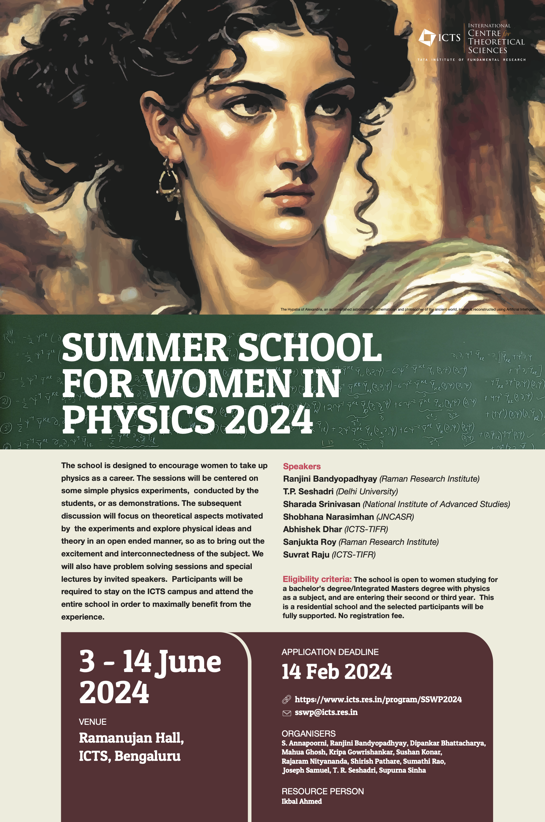Eligibility criteria: The school is open to women studying for a bachelor’s degree/Integrated Masters degree with physics as a subject, and are entering their second or third year. This is a residential school and the selected participants will be fully supported. No registration fee.