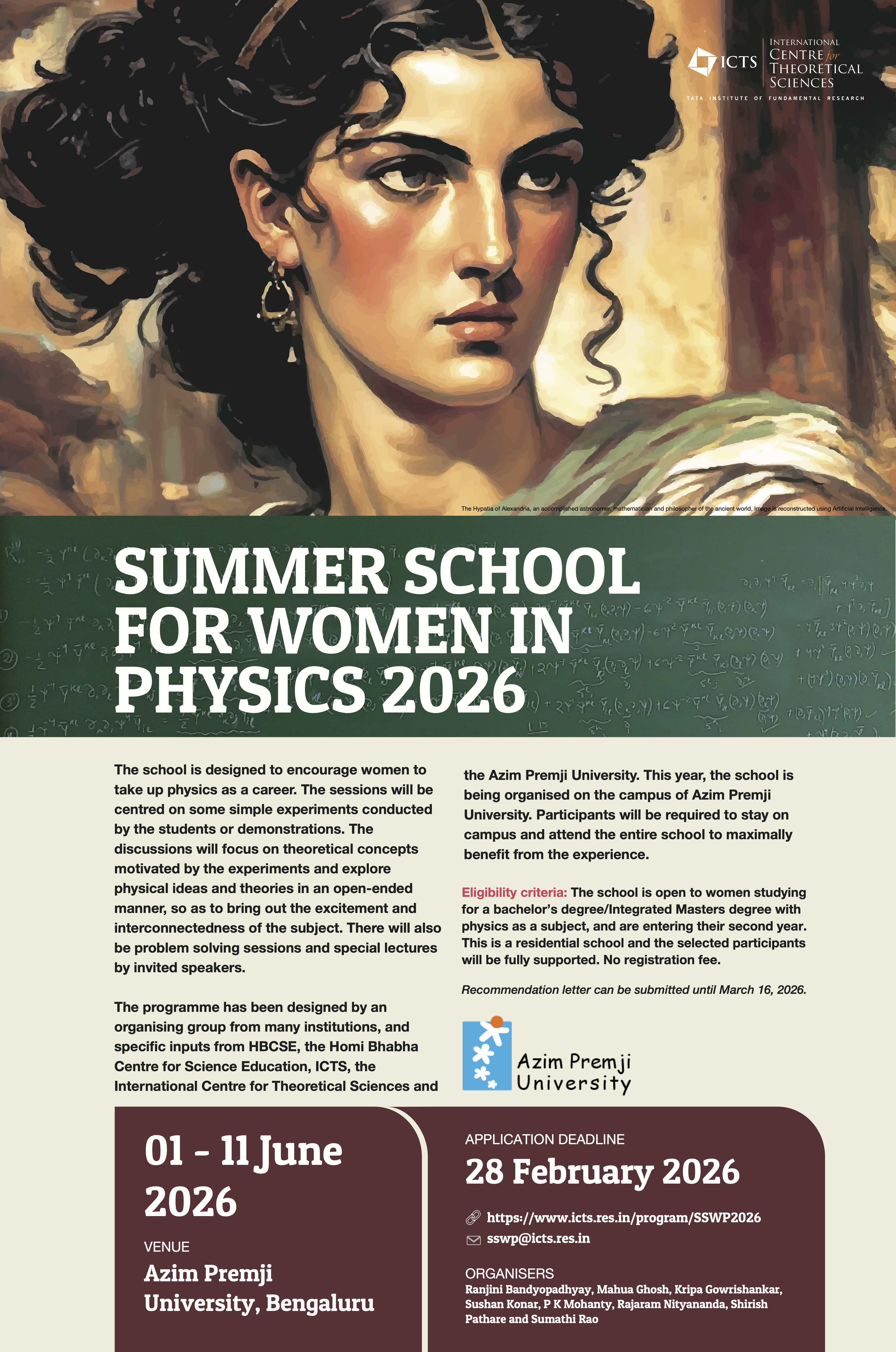 The programme has been designed by an organising group from many institutions, and specific inputs from HBCSE, the Homi Bhabha Centre for Science Education, ICTS, the International Centre for Theoretical Sciences and the Azim Premji University. This year, the school is being organised on the campus of Azim Premji University. Participants will be required to stay on campus and attend the entire school to maximally benefit from the experience.