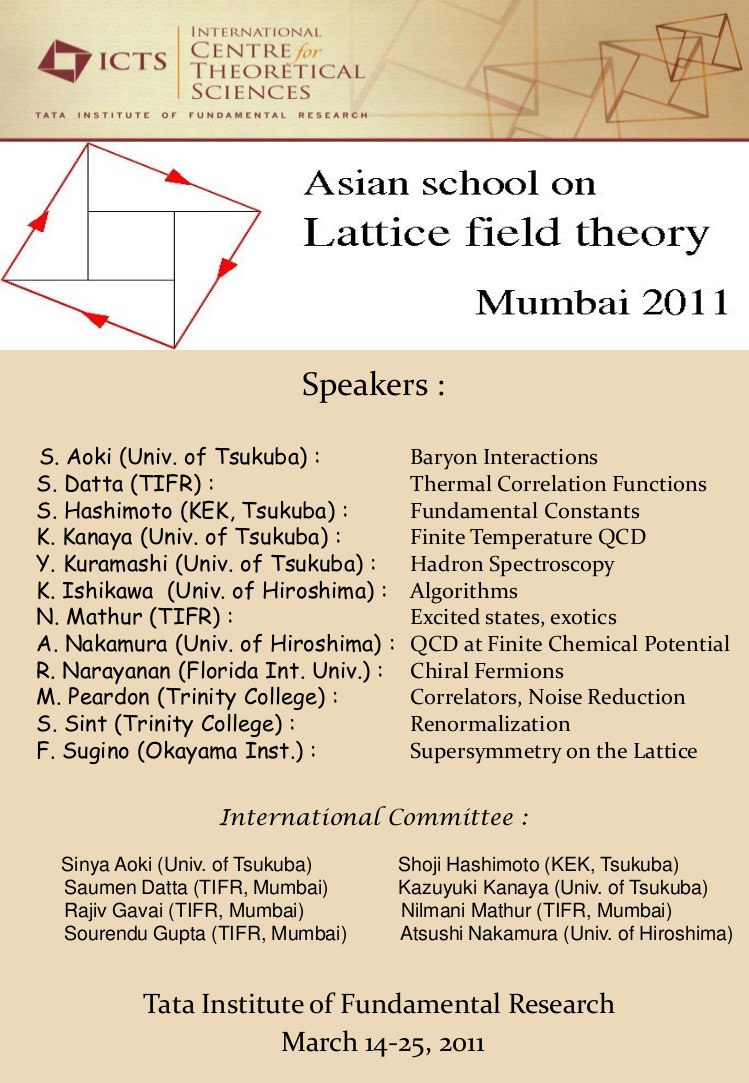 Confirmed lecturers are S. Aoki, S. Datta, S. Hashimoto, K. Ishikawa, K. Kanaya, Y. Kuramashi, N. Mathur, A. Nakamura, R. Narayanan, S. Sint and F. Sugino.