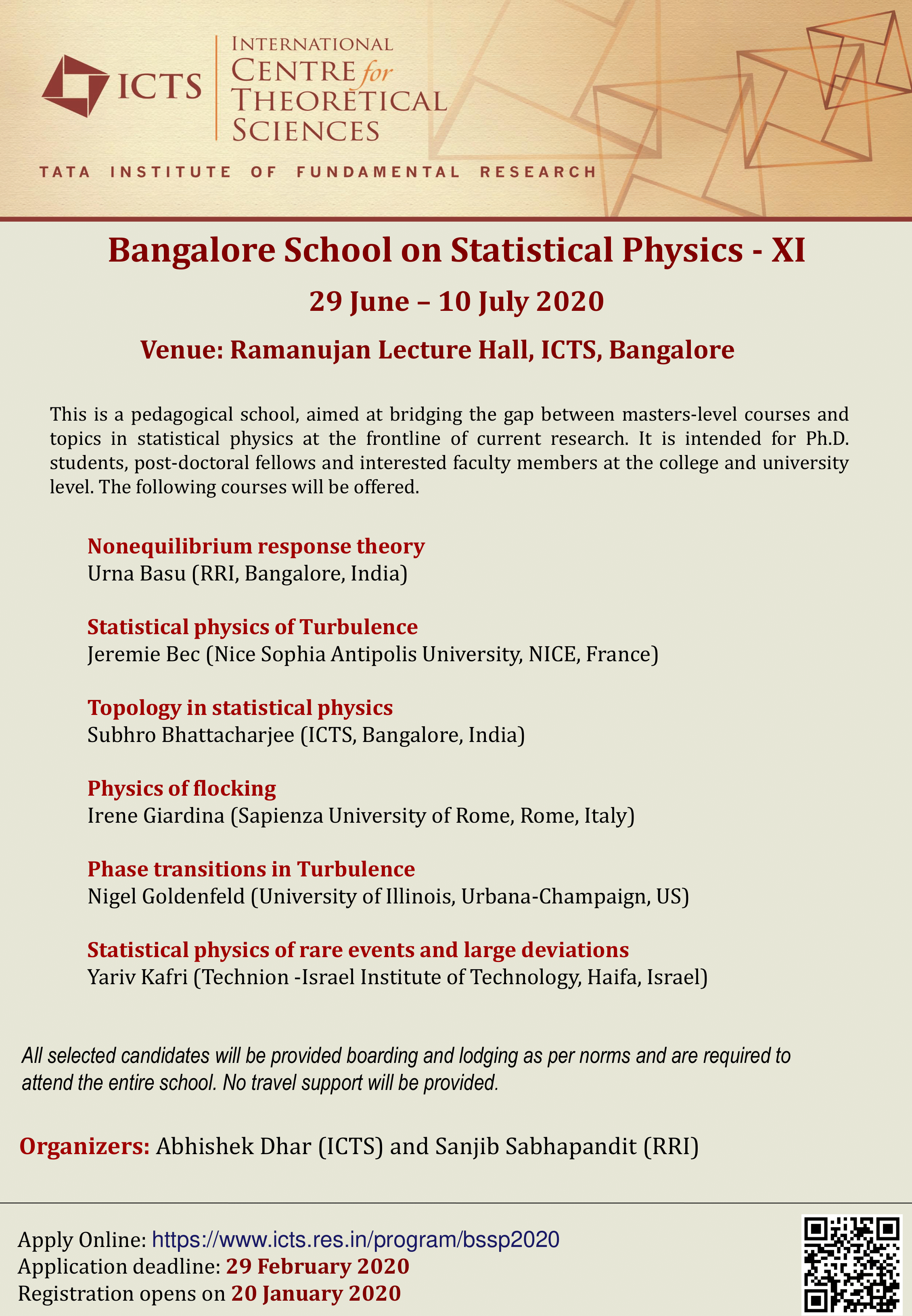 This is a pedagogical school, aimed at bridging the gap between masters-level courses and topics in statistical physics at the frontline of current research. It is intended for Ph.D. students, post-doctoral fellows and interested faculty members at the college and university level. The following courses will be offered.