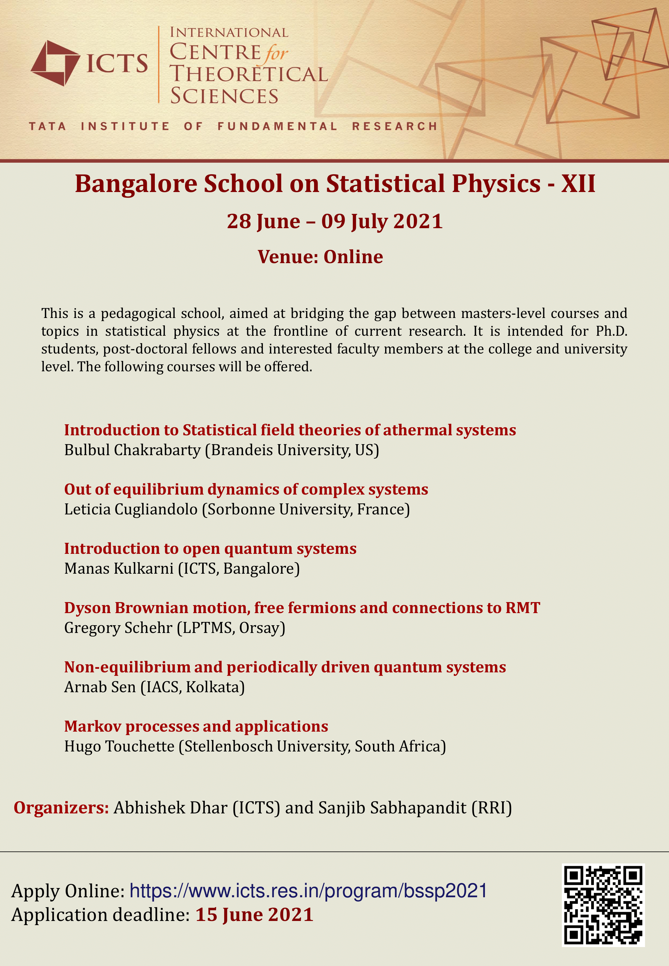 - Introduction to Statistical field theories of athermal systems by Bulbul Chakrabarty (Brandeis University, US)