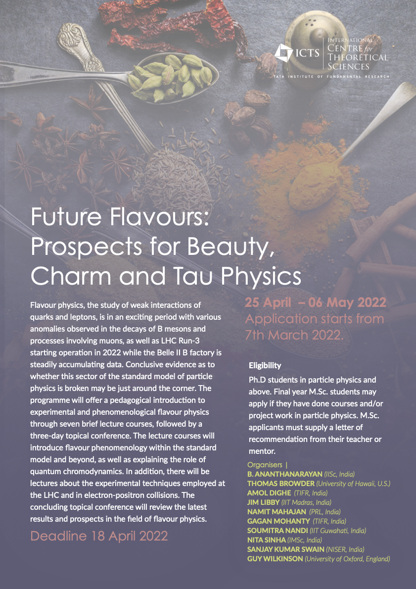 Flavour physics, the study of weak interactions of quarks and leptons, is in an exciting period with various anomalies observed in the decays of B mesons and processes involving muons, as well as LHC Run-3 starting operation in 2022 while the Belle II B factory steadily accumulating data. Conclusive evidence as to whether this sector of the standard model of particle physics is broken may be just around the corner. The programme will offer a pedagogical introduction to experimental and phenomenological flavour physics through seven brief lecture courses, followed by a three-day topical conference. The lecture courses will introduce flavour phenomenology within the standard model and beyond, as well as explaining the role of quantum chromodynamics. In addition, there will be lectures about the experimental techniques employed at the LHC and in electron-positron collisions. The concluding topical conference will review the latest results and prospects in the field of flavour physics.
