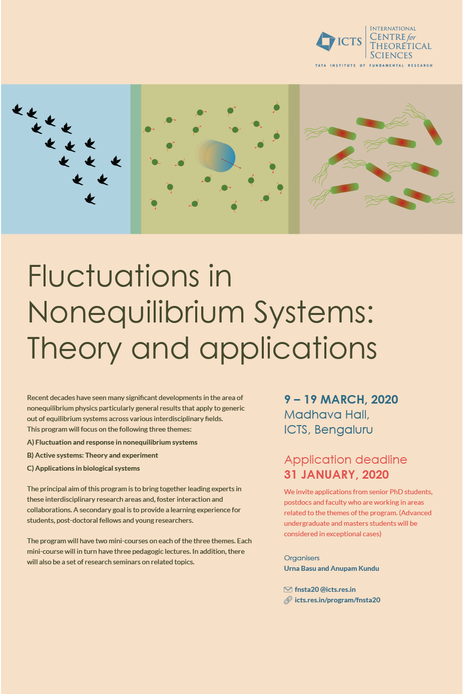 The program also includes Infosys-ICTS Chandrasekhar lecture series by Prof. Christopher Jarzynski (University of Maryland, USA).