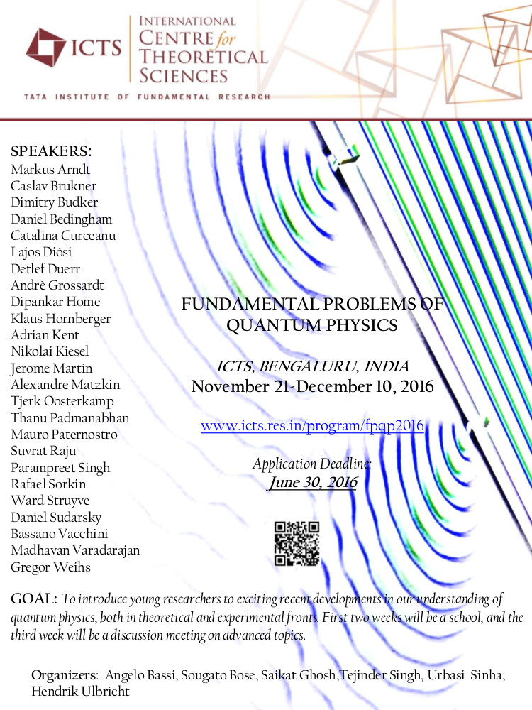 This program will explore the current state of the art and future perspectives in the foundations of quantum theory, also in connection with its unification with general relativity. It consists of a two-week school, followed by a discussion meeting. The topics to be covered in the school include: