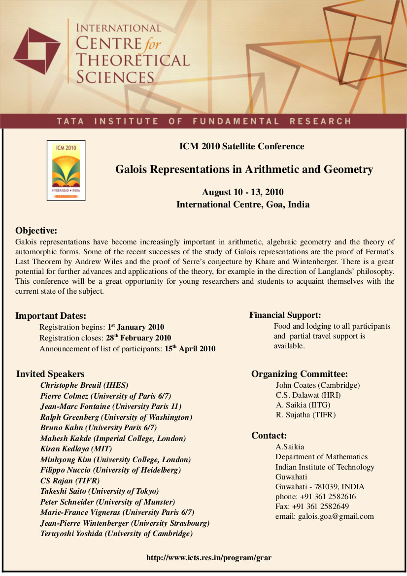 Interested researchers are requested to fill in the registration form and send it to the following email address: galois.goa@gmail.com