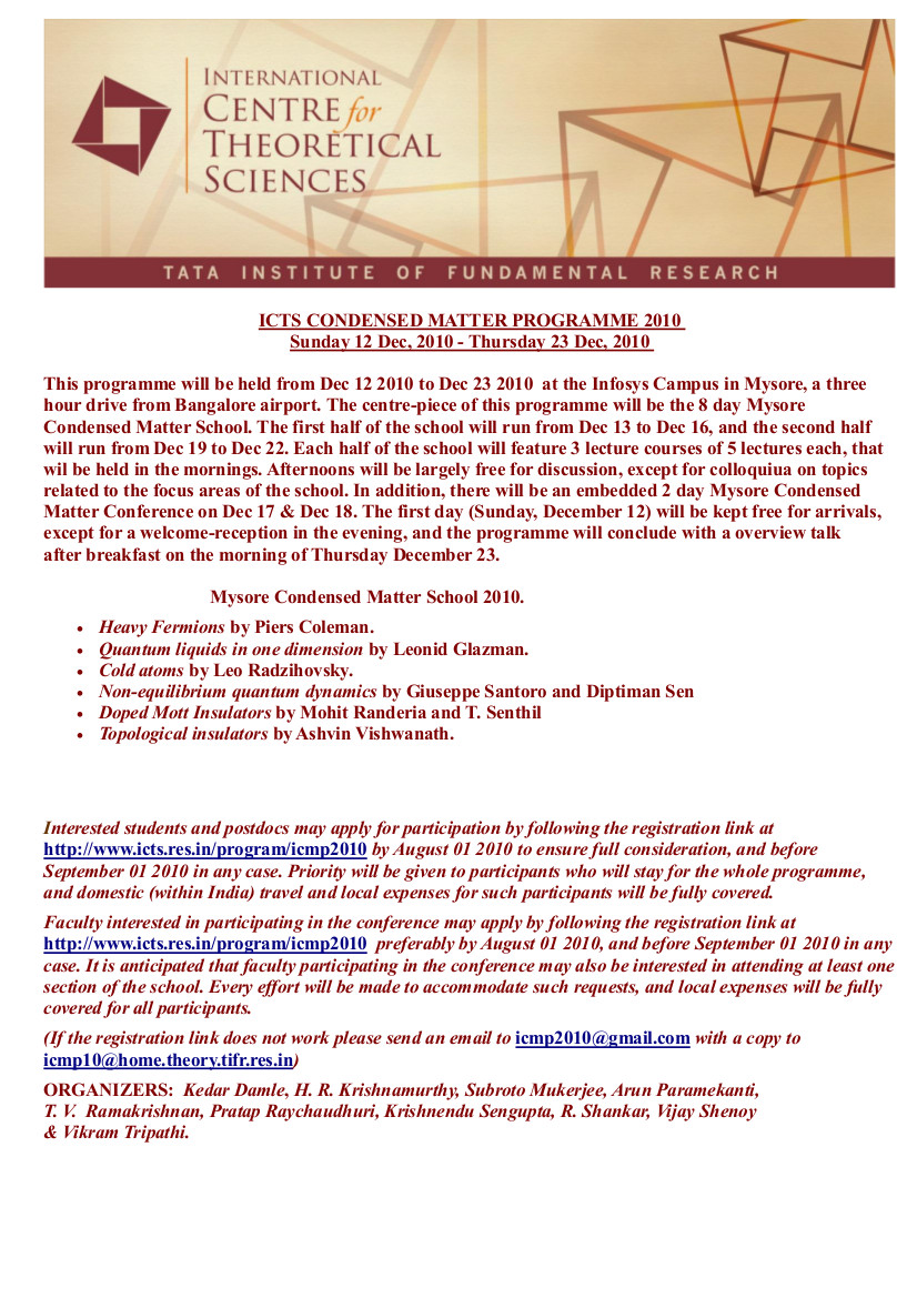 (If the registration link does not work, please email icmp2010@gmail.com with copy to icmp10@home.theory.tifr.res.in)