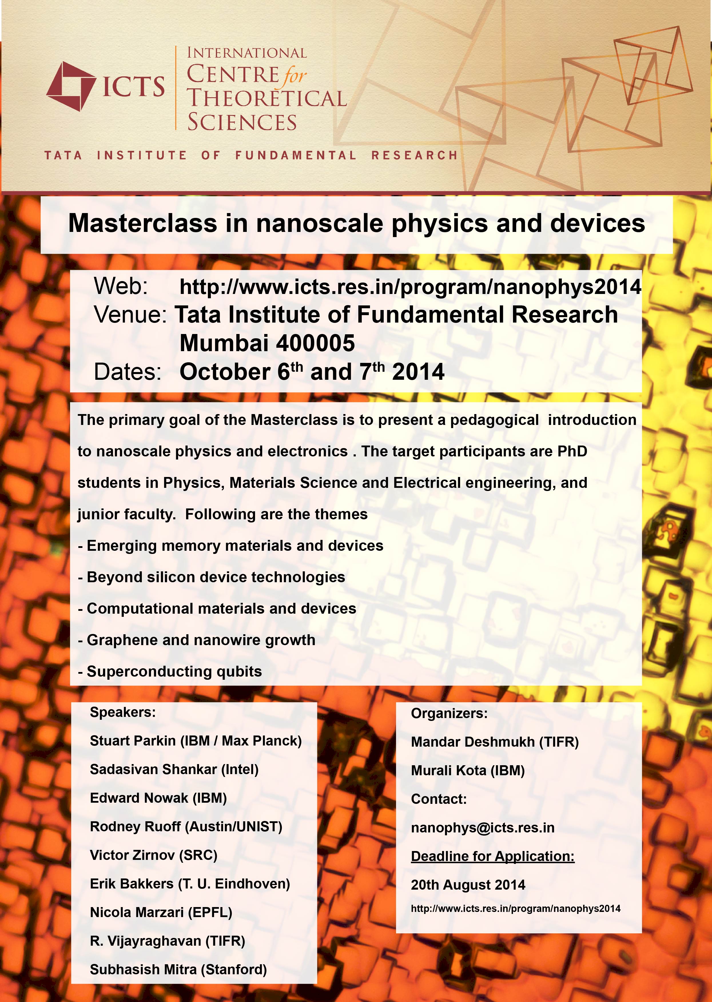 The primary goal of the Masterclass is to present a pedagogical introduction to this rapidly growing field that can have a significant impact. The target participants are masters and PhD students in Physics, Materials Science and Electrical engineering, and junior faculty. The speakers at the Masterclass are pioneers in their respective areas of expertise and possess a clear vision about how scientific ideas at the present time can fashion revolutionary technologies of the future.
